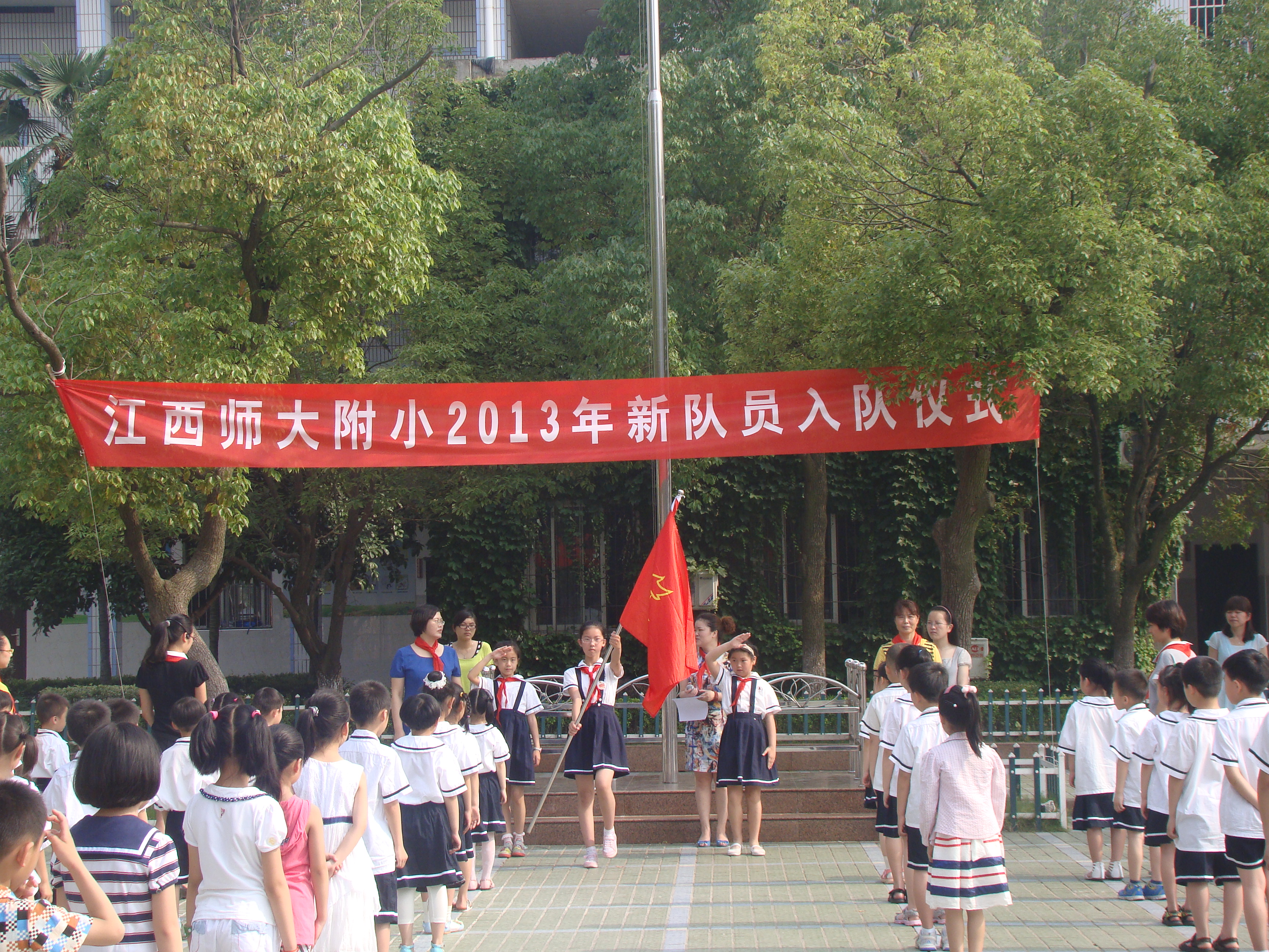 5月24日,师大附小校园内红旗飘扬,举行了隆重新队员入队仪式,95名品学兼优的学生光荣地加入了中国少年先锋队。