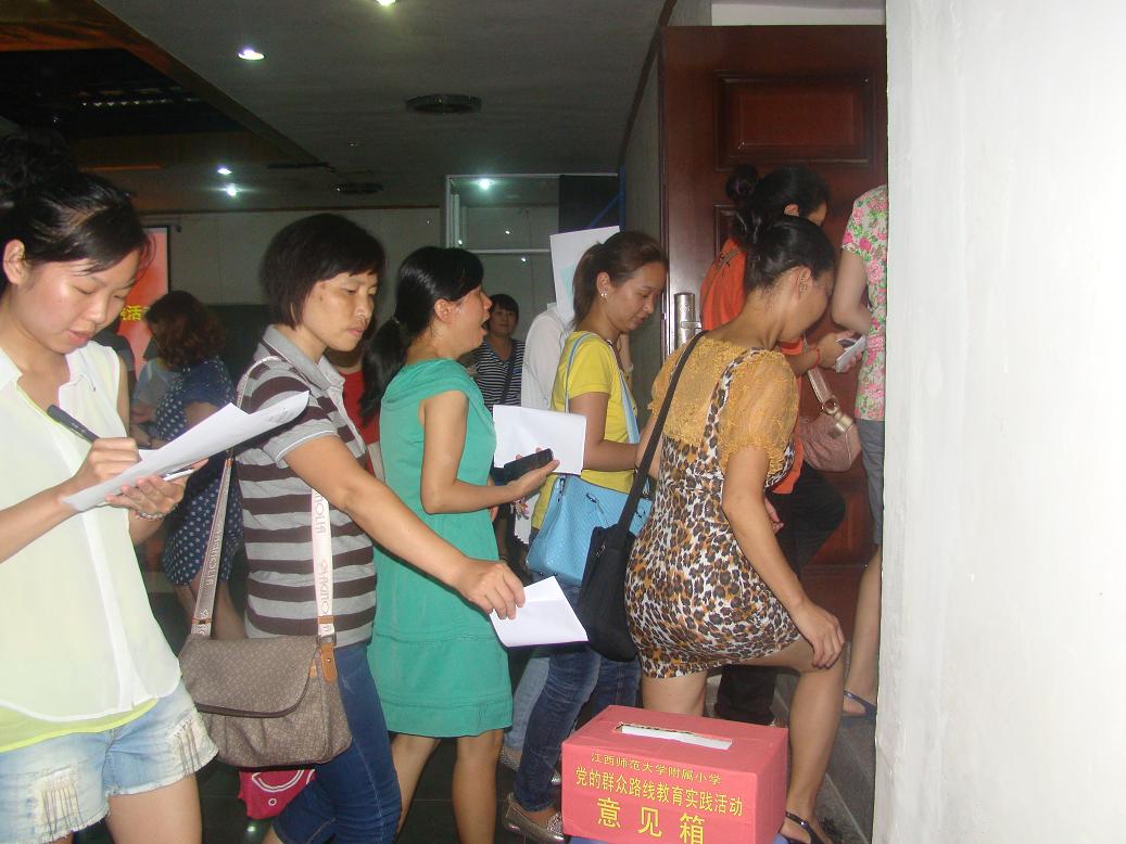 学习教育活动结束,活动领导小组成员与教职工进行了座谈,下发《征求意见表》就反对“四风”、管理决策、党的建设、民生服务、综合治理、教育实践活动本身等六个方面向教职工征求意见,并设立专门的“意见箱”方便教师献计献策,表情诉求,展现学校虚心纳谏,服务为民工作作风。