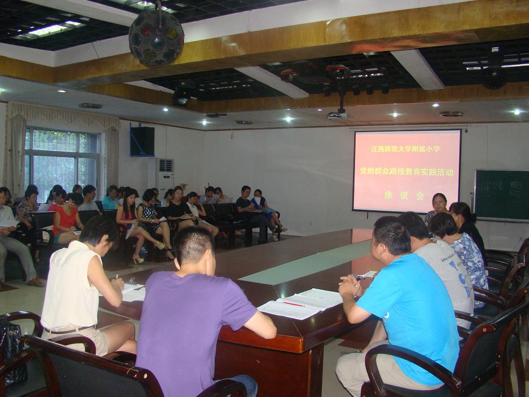 党的群众路线教育实践活动学习教育、座谈会于9月10日在会议室举行,大会由李汶校长主持,周剑萍书记作主题发言。