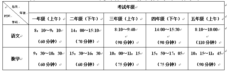 2.6月24日(周三)一~ 五年级举行语文、数学期末考试,时间如下: