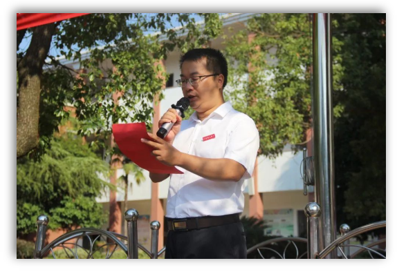 新任校长钟事金同志发表了热情洋溢的讲话,在全国第36个教师节到来之际,钟校长向全体教职工送上了最诚挚的祝福,感谢全体教师多年来无私奉献,辛勤耕耘,为党育人,为国育才。接着他通过上周自己亲眼所见、亲身感受的三个实例,向全体师生提出期望:学生当尊师重教;教师当爱生如子、以校为家。学生与老师亲如一家,相亲相爱,共同为附小美好明天“撸起袖子加油干”。