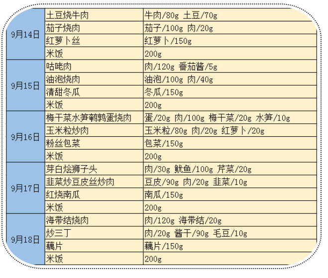 师大附小9月14日-9月25日食谱