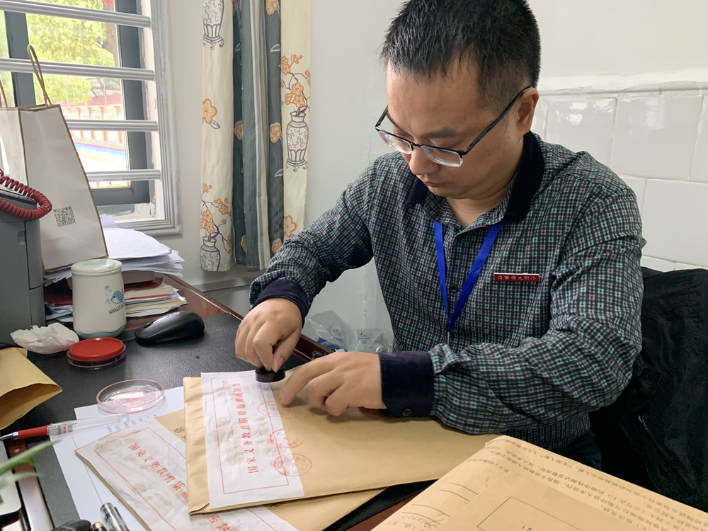 9月28日,厂长资源 委派专人专车到达区教研室保密室,与保密室负责人履行交接登记手续后,领取监测工具箱和“名册密件及条形码大信封”,并安全、准时抵达学校。副校长邓信哲在责任督学徐辉、赵雯监督下,将工具箱、名册密件锁入保险柜,加锁封条,与保密员一起看管。