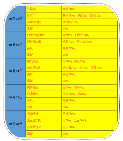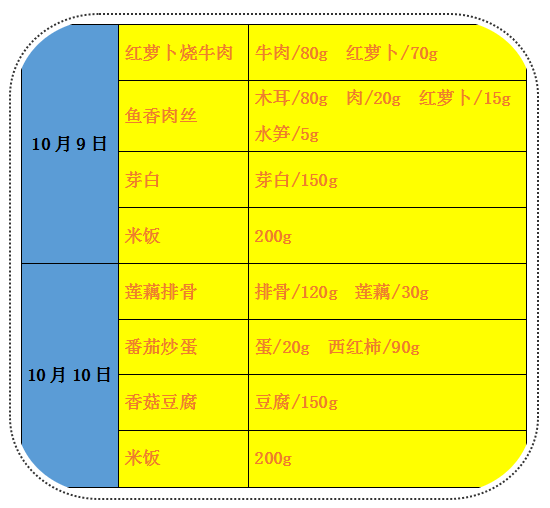 师大附小10月9日-10月16日食谱