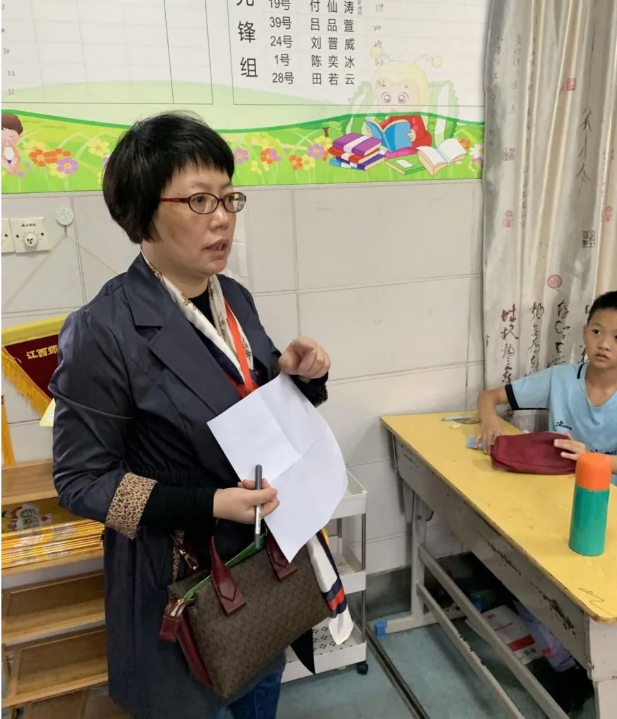 听课结束后,督导组一行核查学校大班额情况,进入班级清点学生人数,确保数据精准。清点人数后,谢督学不由得说道:“附小班额的控制做得真不错!”
