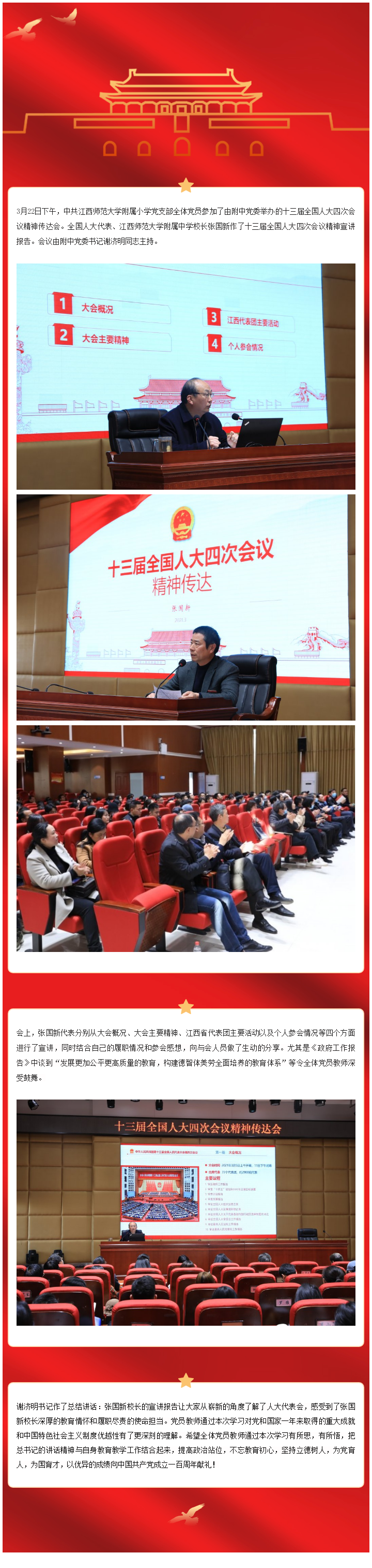 厂长资源 全体党员参加附中党委举办的十三届全国人大四次会议精神传达会