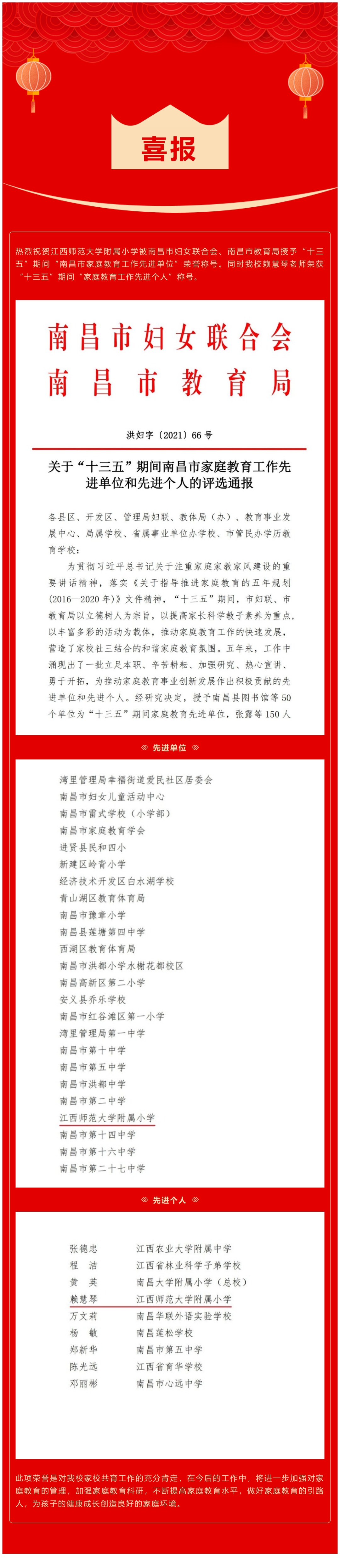 喜报〡热烈祝贺厂长资源 荣获南昌市家庭教育工作先进单位和先进个人