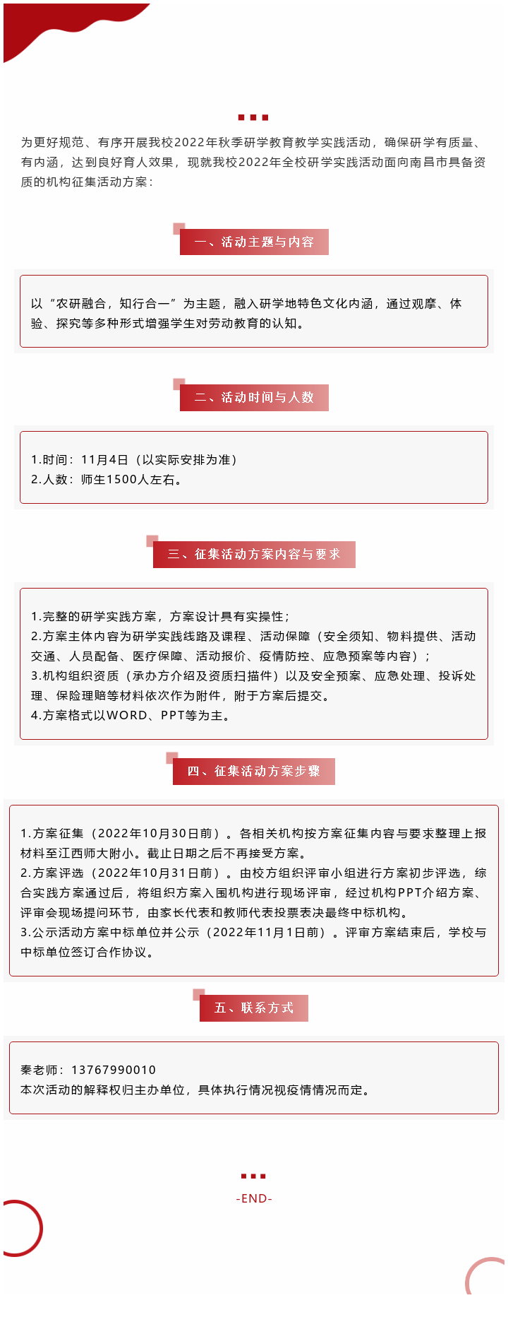 关于公开征求2022学年秋季研学实践活动方案的通知