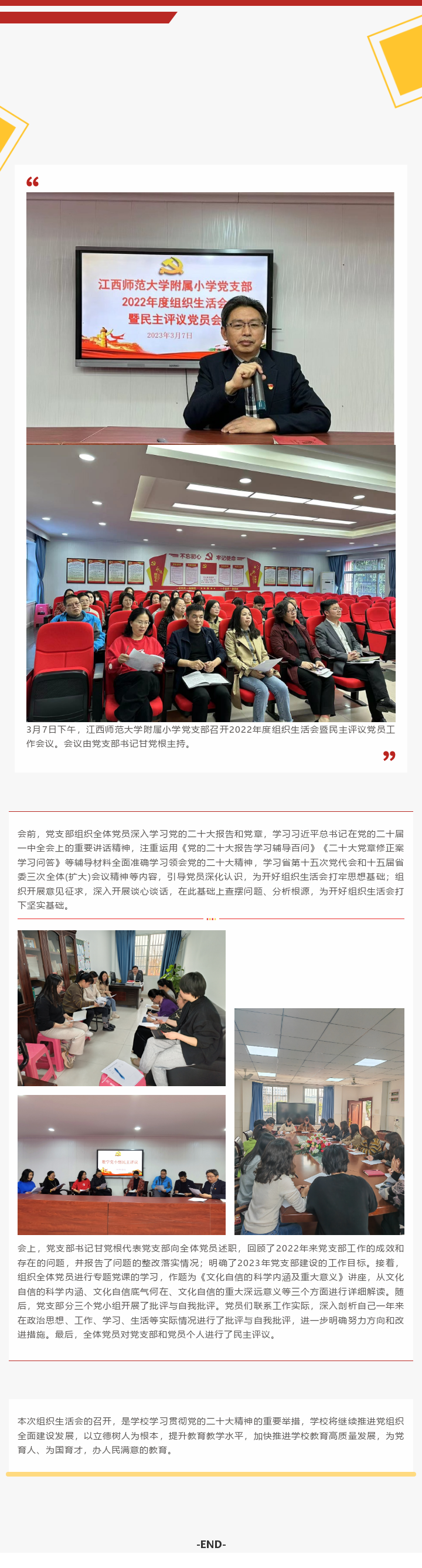 江西师大附小党支部召开 2022年度组织生活会暨民主评议党员工作会议
