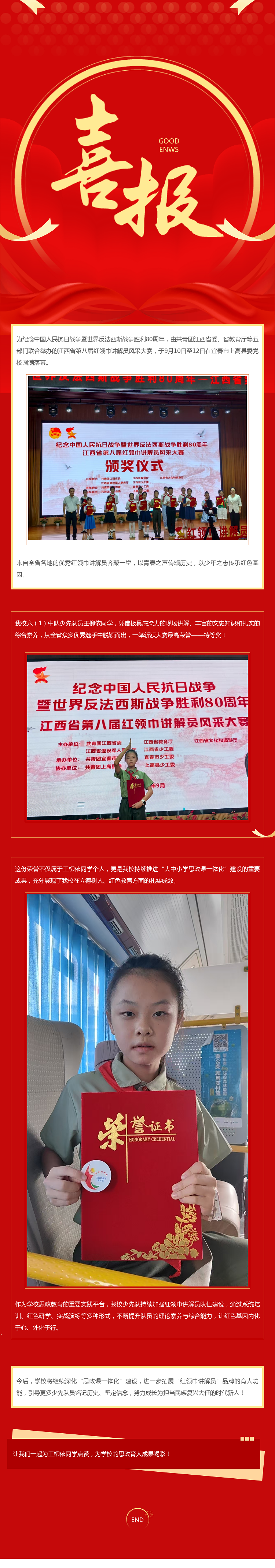 喜报|热烈祝贺厂长资源 少先队员王柳依在全省红领巾讲解员大赛中荣获特等奖!