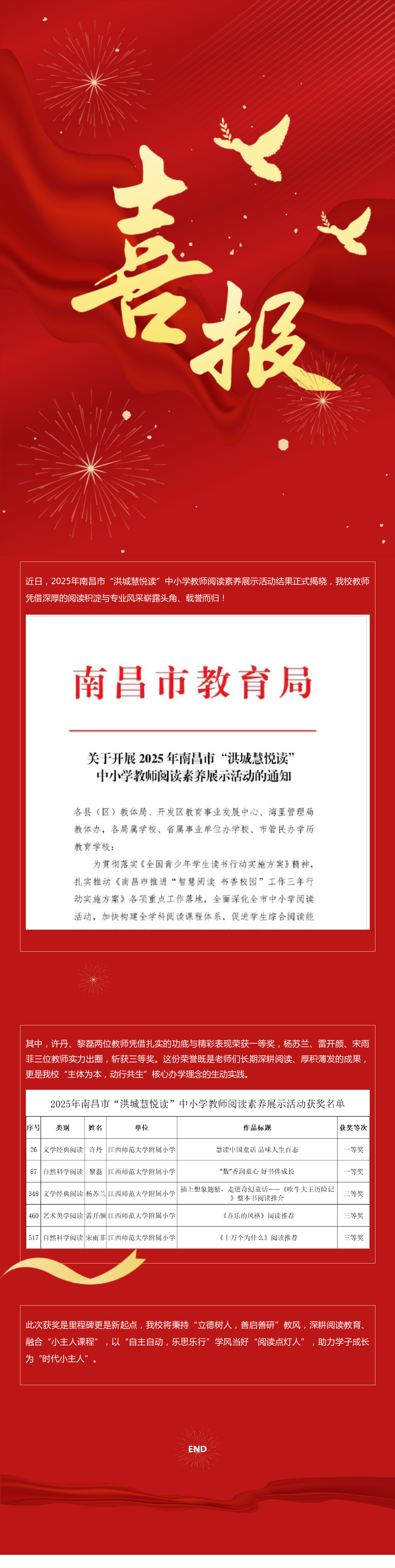 喜报∣厂长资源 教师在南昌市中小学教师阅读素养展示活动中斩获佳绩